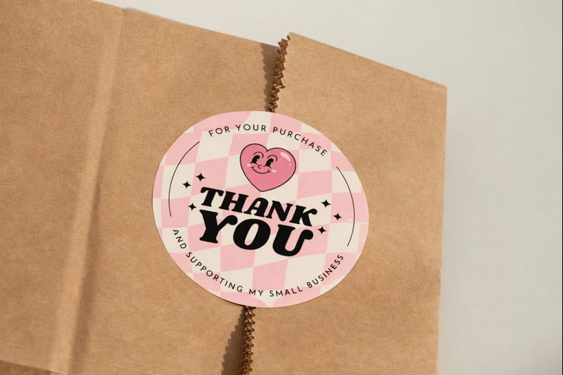 Instead of handing out stickers separately, some businesses build them into packaging: a seal on tissue paper, a branded closure on a box, or a short message sticker on an insert.